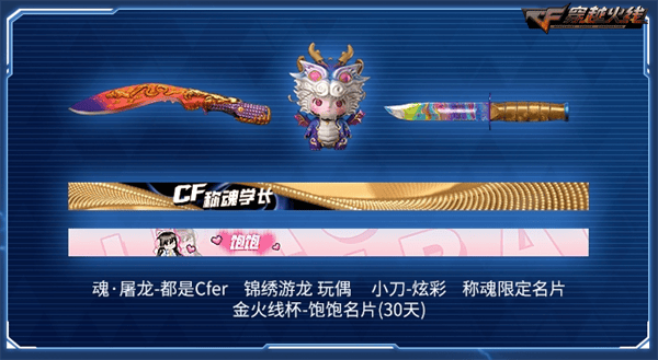CFer进入活动页面获取专属礼包码后还可以领取抖音专属礼包助力暑期游戏,魂·屠龙-dou是Cfer、锦绣游龙玩偶、小刀-炫彩、称魂限定名片与金火线杯-饱饱名片(30天)等稀有道具均可通过本次活动免费获取。
