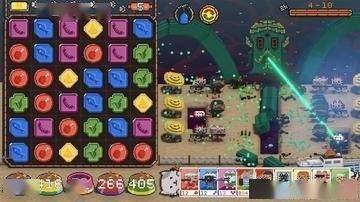 《喵喵大战死剩种》是一款独具特色的像素风塔防游戏,巧妙地结合了即时战略和三消机制。与传统塔防游戏不同,《喵喵大战死剩种》的资源获取与游戏内的“三消”玩法环环相扣。游戏主界面分为两部分,玩家在左侧完成三消,收集资源,类似于《植物大战僵尸》中收集阳光的过程。而不同的是,玩家通过消除不同颜色的方块来获取对应颜色的猫粮,这些猫粮可以用来购买各式各样的猫咪,让它们为你作战。