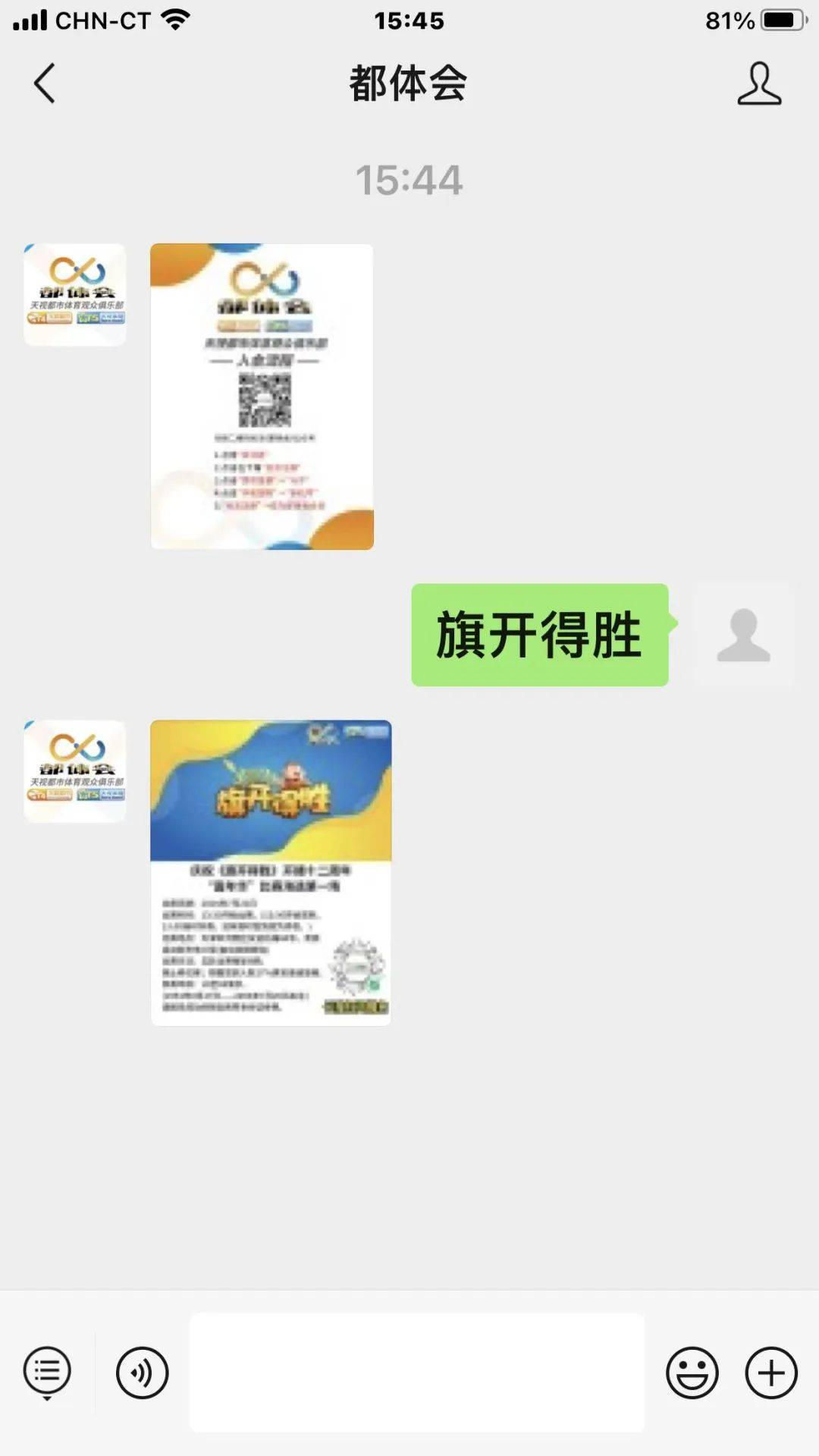 第二步:关注都体会公众号之后,在公众号内发送留言“旗开得胜”