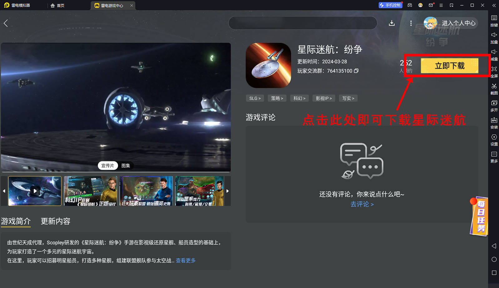 打开模拟器后直接点击搜索框搜索星际迷航:纷争即可安装。