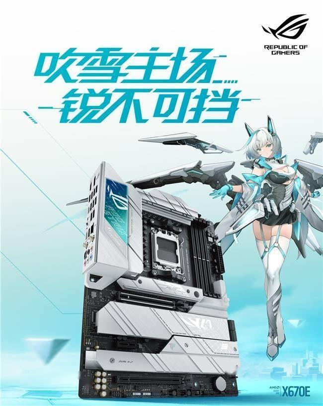 追求更高性能的玩家,也可以选择华硕X670E吹雪主板。其延续了吹雪家族标志性的大面积银白战甲,同时加入诸多新潮的ROG设计元素,银白I/O盔甲上更增加RGB灯效,信仰拉满!京东华硕X670E吹雪主板搭R9 9900X处理器套包预约已上。