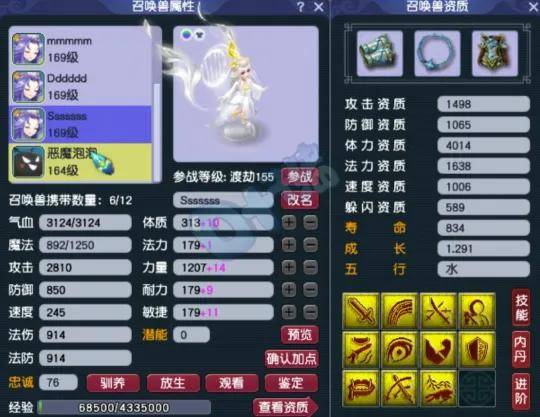 拥有2469法伤、10099气血和1707防御