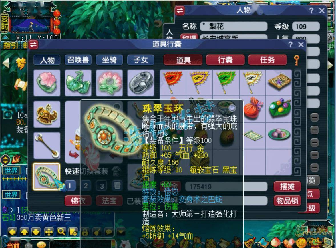 戒指和耳饰下排都是三封印,极大地提升小死亡的命中率,配饰下排双防御一法防,手镯下排双法防一防御,特效都是6级通真达灵!