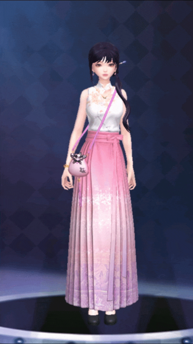 女生古风簪发搭配粉色挎包,秀气玲珑