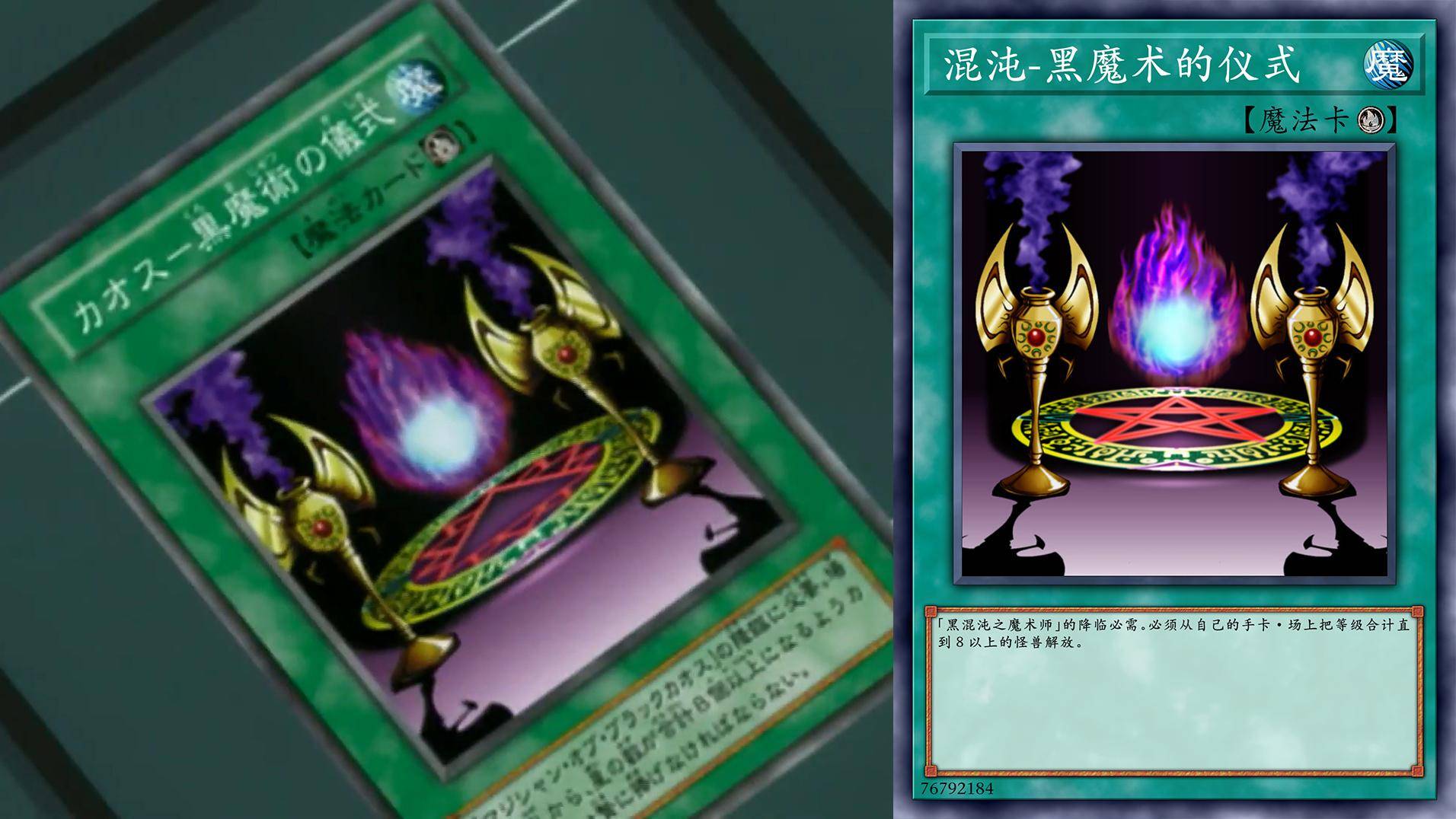 黑混沌之魔术师[怪兽|仪式]魔法师/暗[★8]2800/2600。「混沌-黑魔术的仪式」降临。