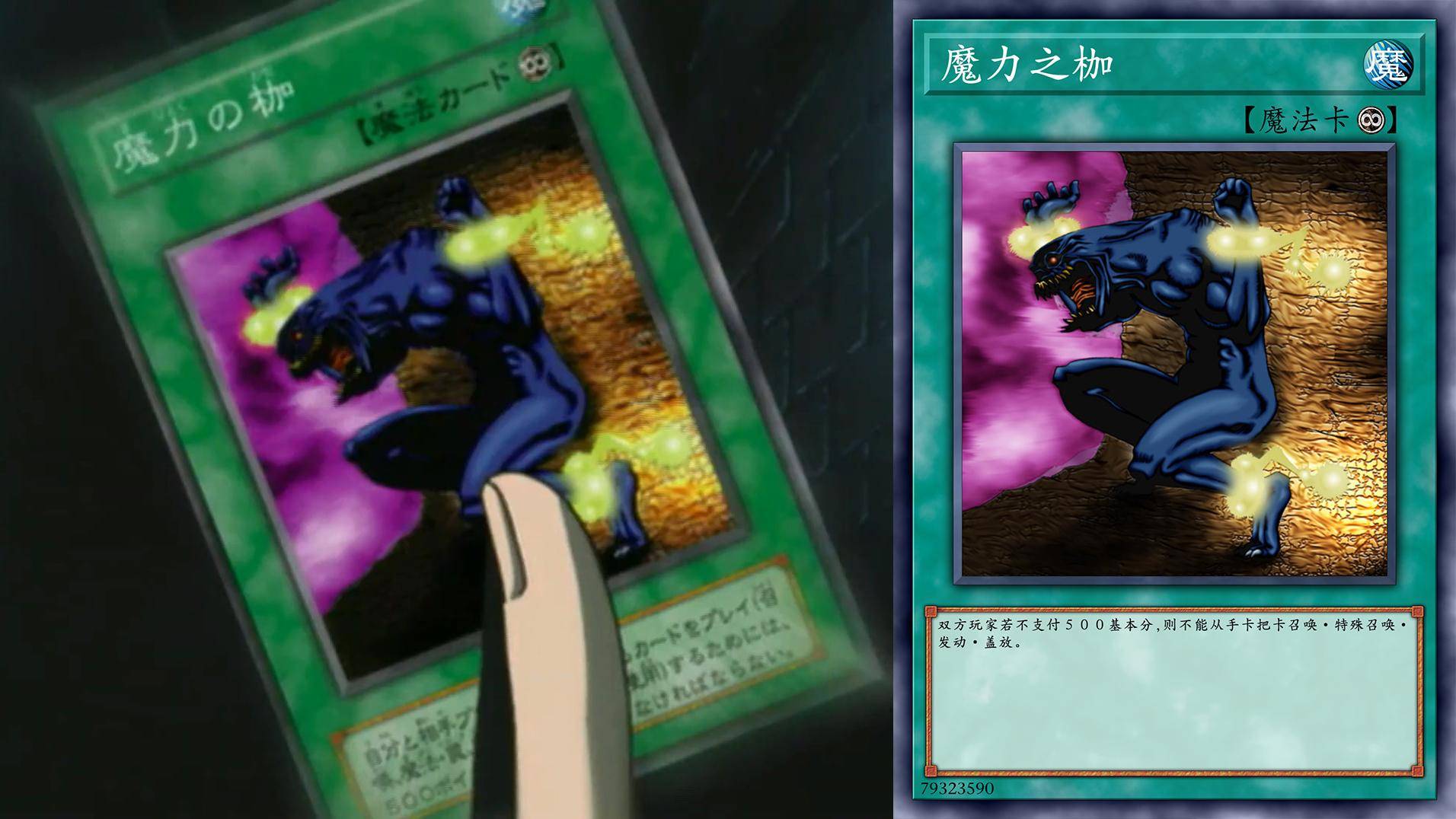 魔力之枷[魔法|永续]。效果:双方玩家若不支付500基本分,则不能从手卡把卡召唤·特殊召唤·发动·盖放。