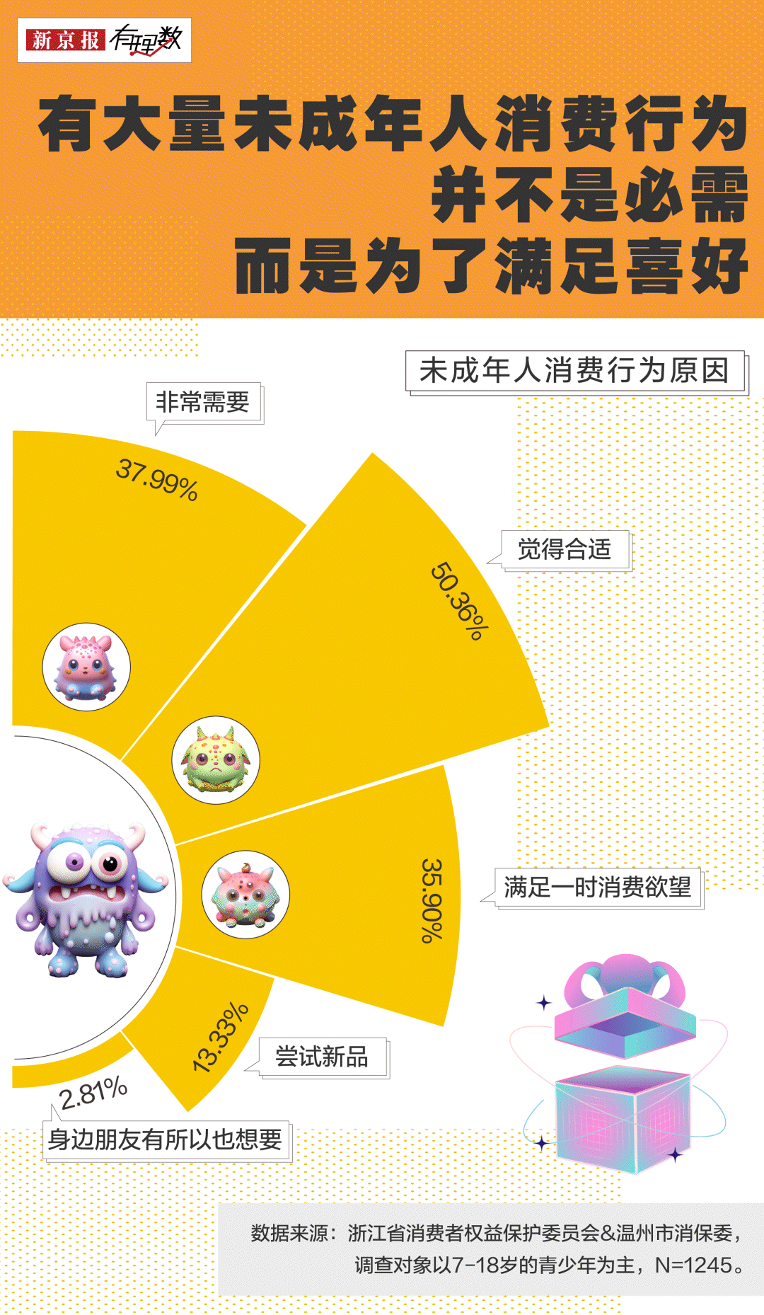 在浙江消费者权益保护委员会和温州消保委联合发起的未成年人消费观调查中,有大量未成年消费行为并不是因为必需,而是为了满足自己的喜好,由于未成年人的心理特征,容易出现冲动、盲目消费的行为。