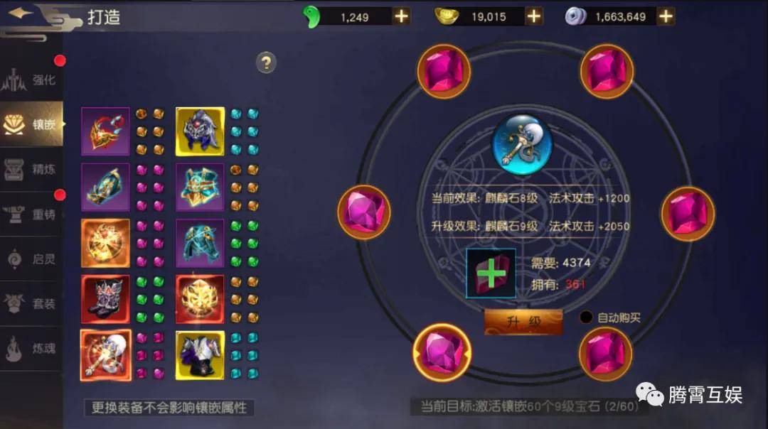 5、宝石具有套装效果,镶嵌到指定目标可激活对应镶嵌属性加成,提升角色战力。