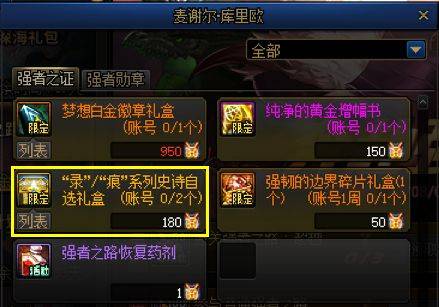 2、强者之证商店
