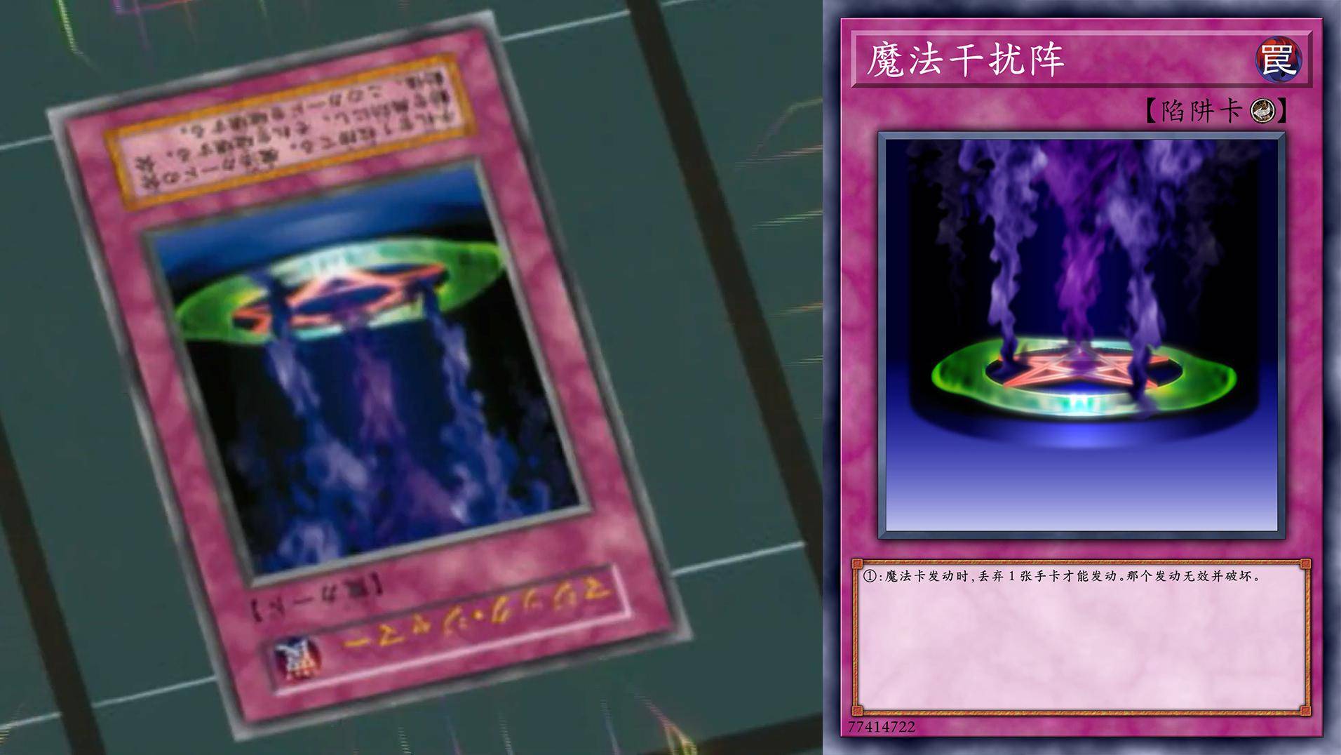 魔法干扰阵[陷阱|反击]。效果:魔法卡发动时,丢弃1张手卡才能发动。那个发动无效并破坏。