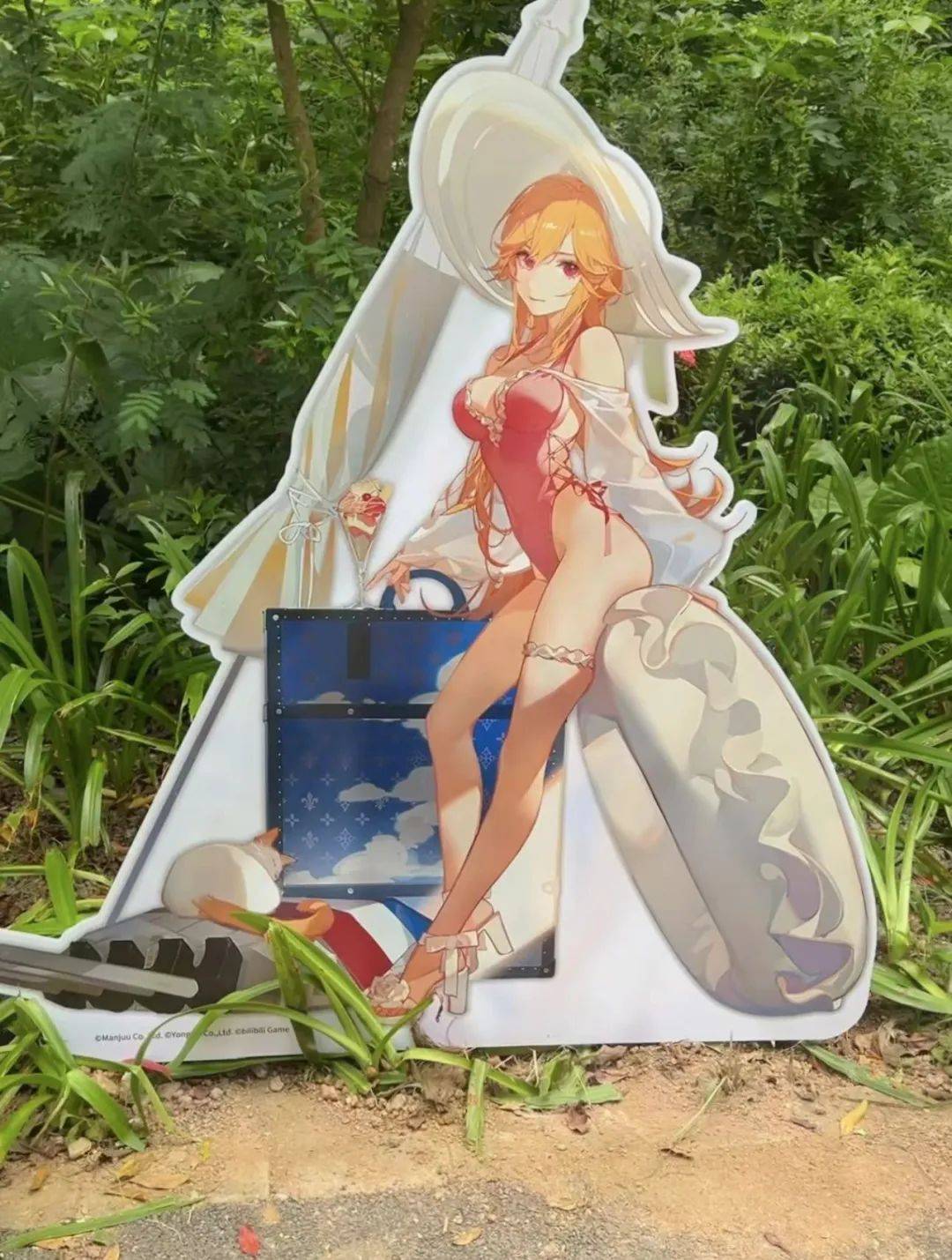 在进入椰林海滩入口,前往活动现场的路上,立着许多《碧蓝航线》的角色立牌,我时不时就能看见有玩家去拍摄合影,还遇见了一个在这条路上来回走了两遍,寻找有没有自己喜欢的角色的玩家。