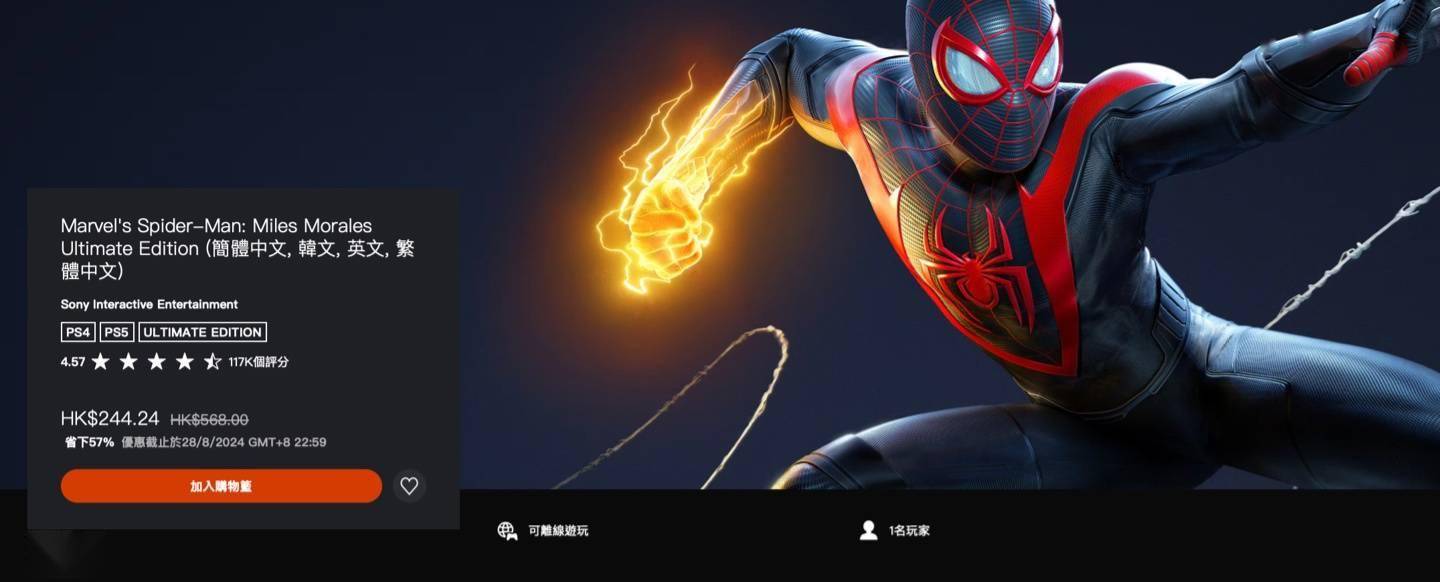 - PS5+PS4 合版:原价 399港币,4折后 159.6 港币(当前约 146 元人民币)