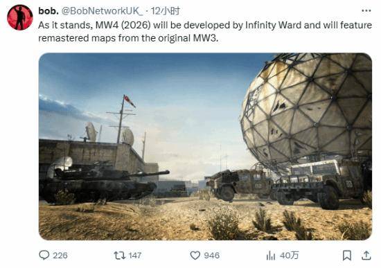 据外媒sportskeeda报道,数据挖掘博主BobNetworkUK在推特里透漏了一些关于2026年《使命召唤》新作与《使命召唤:战区》的消息,并表示2026年的《使命召唤》新作为《使命召唤:现代战争4》,一起来看下。