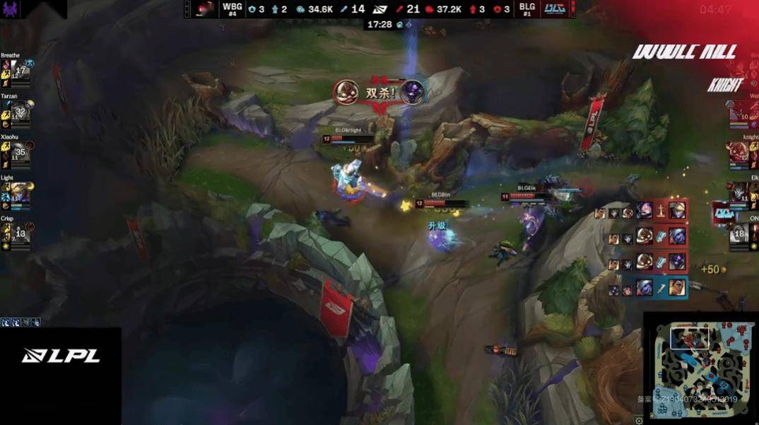 Breath杰斯先送的情况下,WBG其他人跟入魔一样和BLG在野区硬刚到底,结果是BLG打出了一波1换5,飞机拿下三杀。