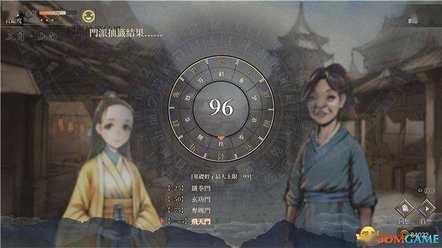 接下来,进行门派抽签,你将从铁拳门,玄功门,夺魂门和飞天门中选出一个门派。
