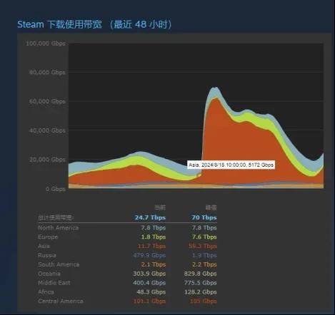 这是个啥概念?刷新了在Steam上下载使用带宽的峰值纪录。