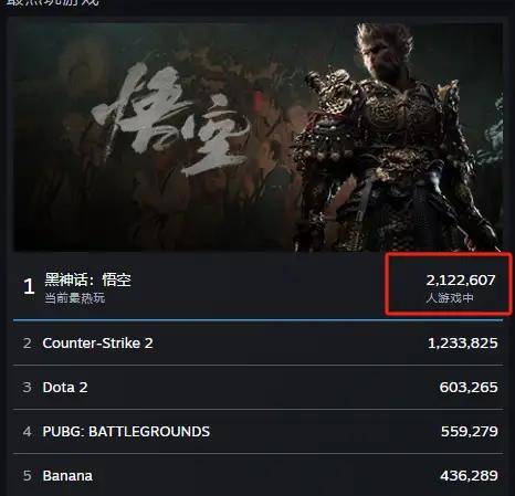 《黑神话:悟空》Steam 同时在线人数达历史第二,仅次于 PUBG,这一成绩意味着什么?