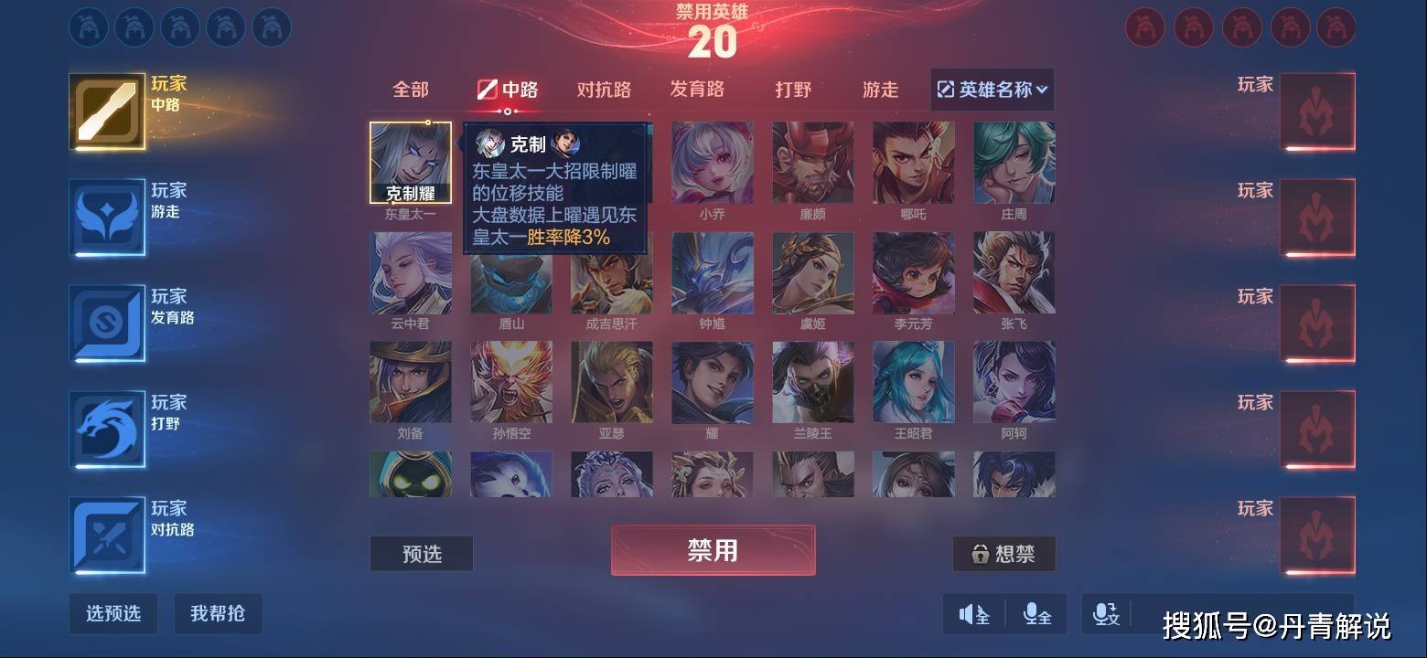 双方禁用英雄时,可能会发生重复禁用现象,因此新的禁用机制,最大可禁10位英雄,最少禁5位英雄。