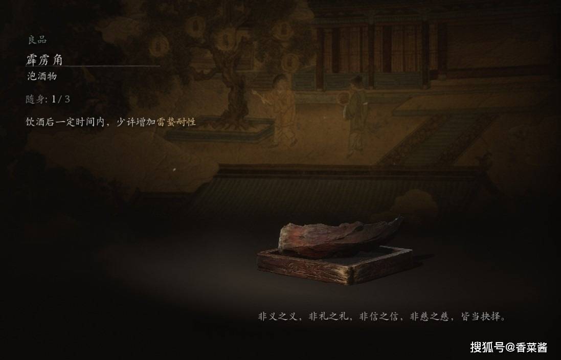 黑神话悟空中的霹雳角主要效果是在饮酒后一定时间内少许增加雷蛰耐性。