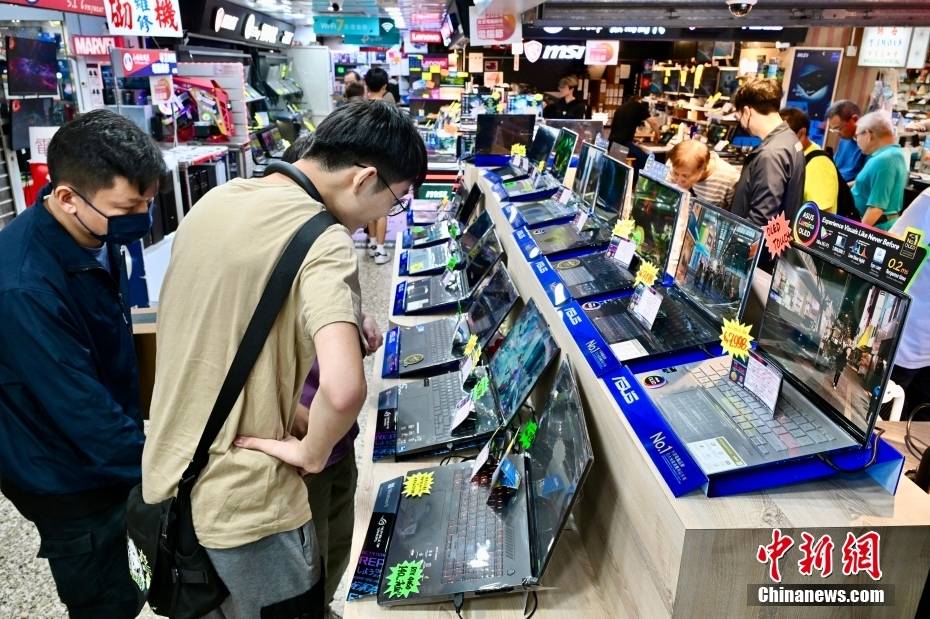 8月28日,香港一电脑商场有商户以中国国产单机游戏《黑神话:悟空》推销电脑产品,吸引市民消费。据了解,《黑神话:悟空》8月20日全球同步上线以来,全平台销量已逾千万套。图为香港市民选购电脑产品。中新社记者 李志华 摄