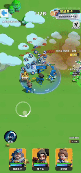 在游戏的过程中,玩家可以吸纳场上的中立小兵,扩大我方军力,同时借助英雄和兵团的输出,击败其他队伍并吞并失败队伍的兵力,毒圈范围也会随着游戏推进逐渐缩小,直到场上只剩一个队伍,即游戏结束。