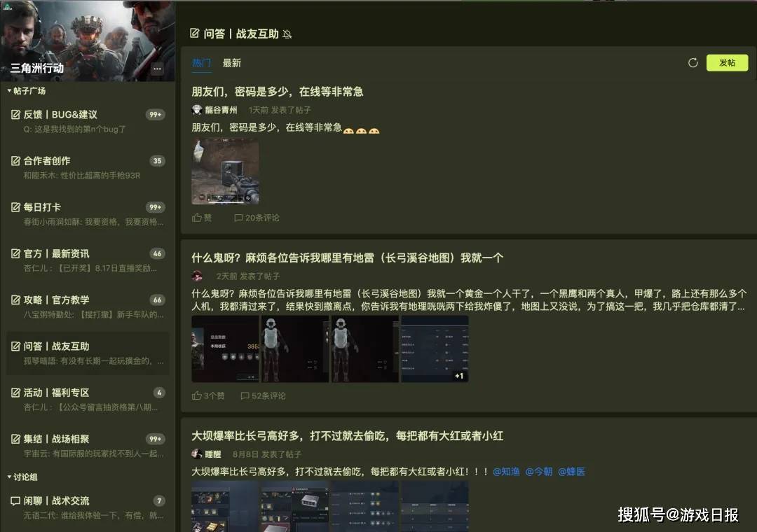 以不久前官宣定档9月底的《三角洲行动》为例,引入阶段,官方在频道举办的各种活动会掉落测试资格,而玩家的活跃度也会转化为频道身份,从而在测试资格中得到更多的倾斜;测试反馈阶段,频道主页首个核心版区就给了BUG&建议,在这里玩家可以随时反馈自己的问题,并且官方的积极回应还能带动其他玩家反馈积极性;而在调整迭代前,策划还通过频道中的直播板块固定时间交流,既在拉近双方关系,也能快速获取玩家建议。