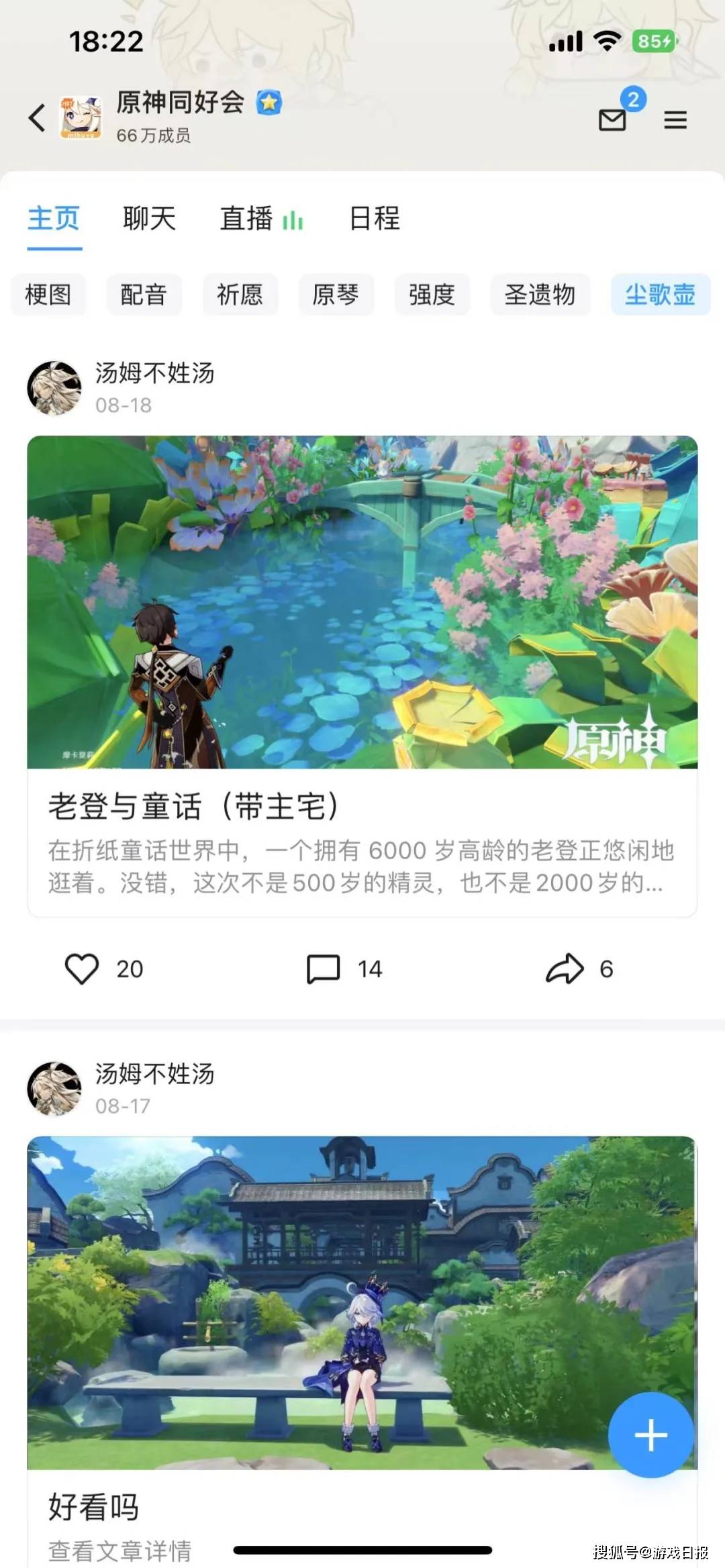 组合了福利活动、UGC内容、聊天以及直播4大主要板块,“原神官方频道”带给笔者的初印象是“完整、成熟且使用起来比较便利”,而它最先让我觉得不一样的地方,就是《原神》玩家在腾讯频道上互动积极性极高。