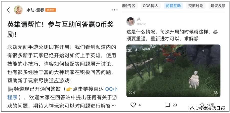 以《永劫无间手游》为例,这款游戏在上线前就有PC用户对其机制有认知,在移动端扩展群体后,他们本就是优质的、能解决大量新玩家复杂问题的资源。而官方通过设置问答互助版区,并加以活动引导,更轻松、高效地帮助新玩家实现了过渡。