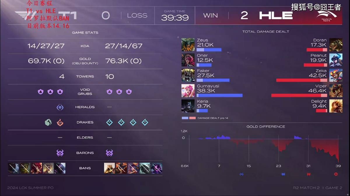 HLE三比零,战胜T1之后,就和GEN一样,晋级胜者组决胜;而T1则是跌落败者组,与DK一起,争夺一张晋级点机会。坦率的讲,如果以今天T1点状态,囧王者估计T1还是会输。