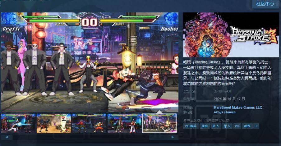 今日(8月29日),格斗游戏《Blazing Strike》Steam页面上线,游戏支持简繁体中文,预计于2024年10月17日发售,感兴趣的玩家可以进入商店页面。