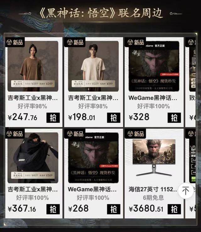《黑神话:悟空》自上线以来热度不减,很多玩家已经通关,并在社交媒体上分享游戏体验和通关心得。如果你还没来得及入手这款3A大作,不妨来京东一站式入手游戏、电脑装备和周边等好物。8月29日,《黑神话:悟空》京东主题月上线,消费者可在京东APP搜索“天命人”进入活动页面,既能入手《黑神话:悟空》WeGame数字版游戏,也能一站式配齐游戏所需的游戏本、显卡、组装机、台式机等装备,更有机会抽万件联名好礼。此外,还可在京东入手《黑神话:悟空》Steam版。