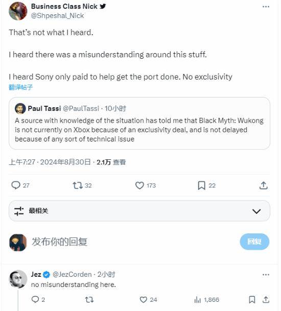 《黑神话:悟空》由于各种原因没有登陆Xbox平台,造成了目前PS平台的事实独占局面,国外社区据此传播了各种说法,比如索尼其实已经与游戏科学签署了独占协议。