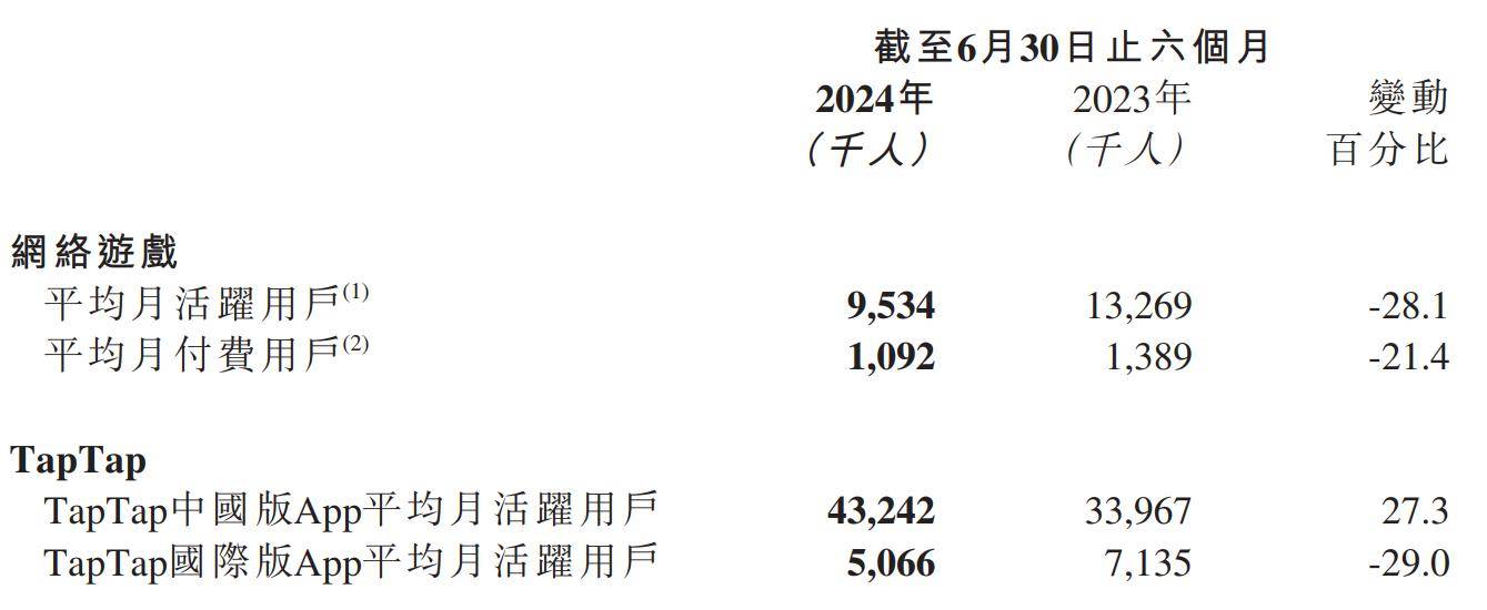 心动公司2024年上半年TapTap中国版APP平均月活跃用户为4324.2万人,较上年同期的3396.7万人增长27.3%;TapTap国际版APP平均月活跃用户为506.6万人,较上年同期的713.5万人下降29%。