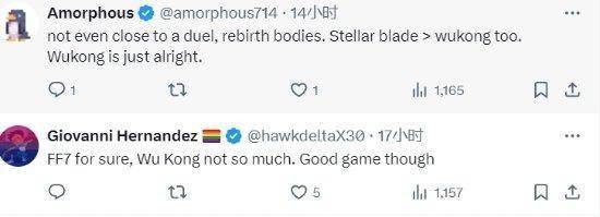 但不可否认的是,面对SE成熟的经验+深厚的人气,初出茅庐的游戏科学确实显得有些稚嫩,玩家大多表示如果二选一的话自己还是倾向《FF7重生》——但《黑神话》依然是款好游戏。