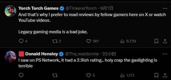 Mark Kern的推文显而易见是在质疑IGN的打分标准,仿佛只要你的游戏中顺应LGBT群体倡导的多样性,就能让游戏获得一个看起来还不错的分数。评论区有玩家表示“《剑星》竟跟这两个玩意同一水平简直可笑”“这些媒体评测就是笑话,我更愿意看油管等社交媒体上的反馈”
