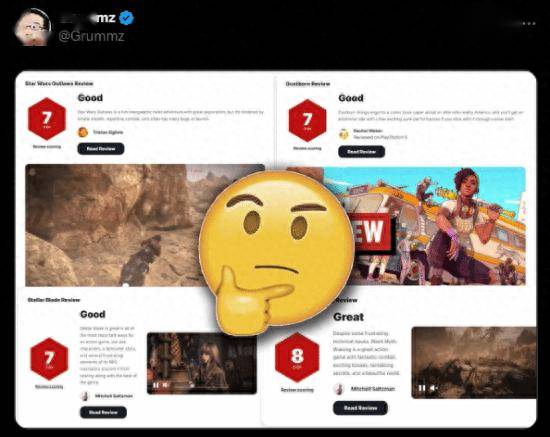 知名反DEI人士、前暴雪制作人Mark Kern日前发文对IGN游戏评分标准发出质疑,其最新推文的配图将两款有鲜明“觉醒文化”标签的游戏(星球大战:亡命之徒、尘路之旅)和《剑星》《黑神话:悟空》放在一起比对,并配上了一个“疑问”表情。