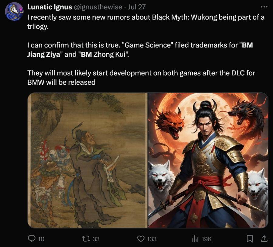 此外,有传言称《黑神话:悟空》可能会推出以《姜子牙》和《钟馗》为主角的DLC。这些DLC内容预计将在2025年发布。
