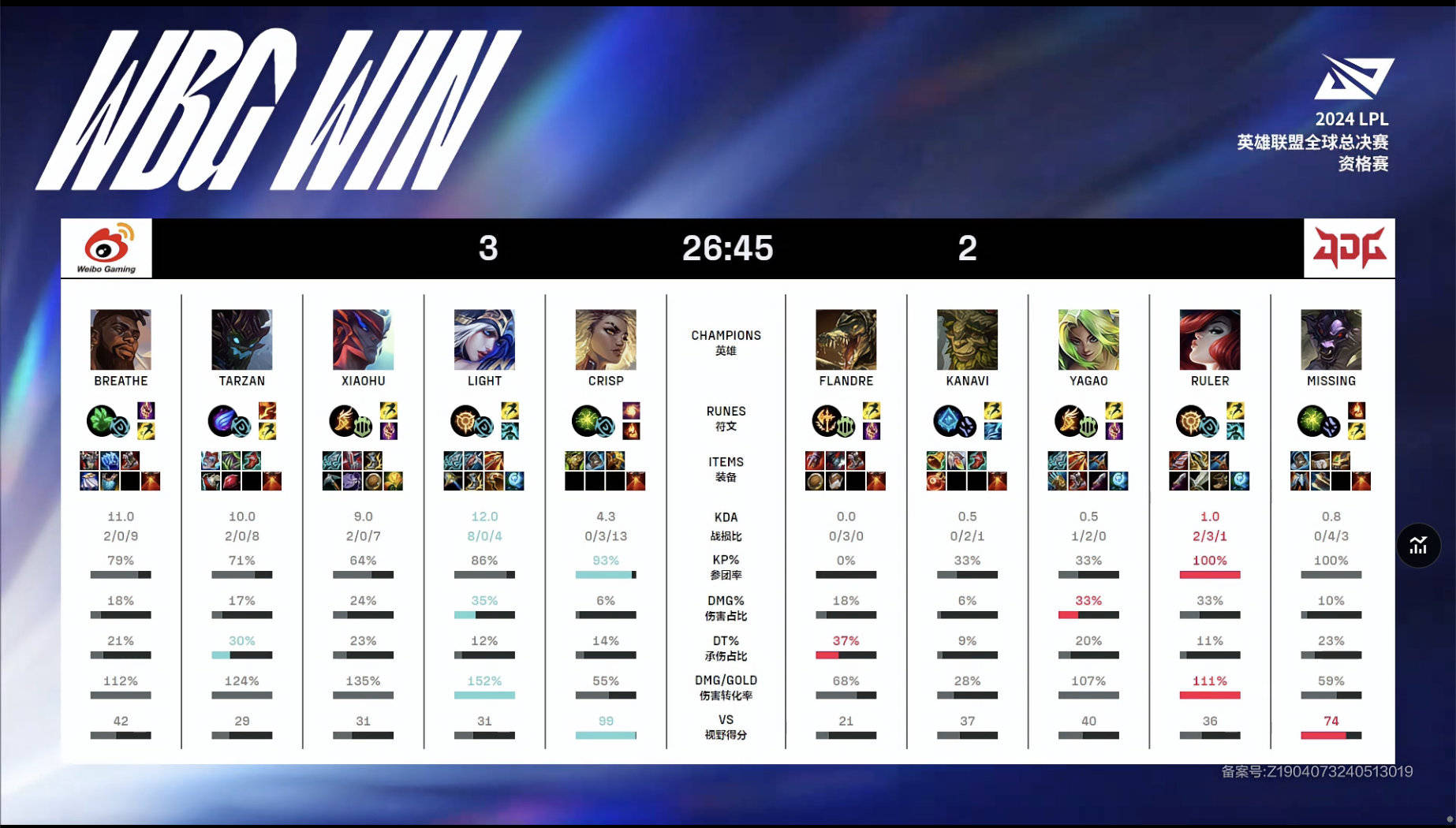 在刚刚落幕的2024 LPL全球总决赛资格赛中,WBG战队以总比分3:2战胜JDG战队,成功获得LPL赛区第四种子的身份,挺进S14全球总决赛。WBG战队自定组赛以来便不被外界看好,然而他们牢牢把握住了最后的机会,在历经多次BO5的比赛后,赢得了通往世界舞台的最后一席之地。相比之下,曾经的LPL大王JDG,则不得不接受黯然退场的命运。