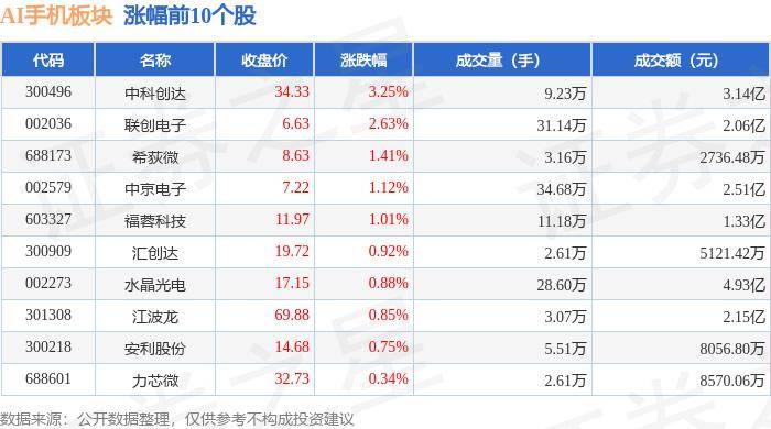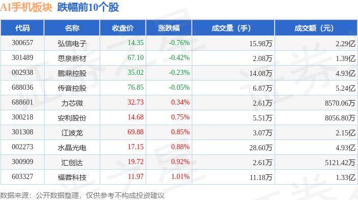 从资金流向上来看,当日AI手机板块主力资金净流出2445.36万元,游资资金净流入51.51万元,散户资金净流入2393.85万元。AI手机板块个股资金流向见下表: