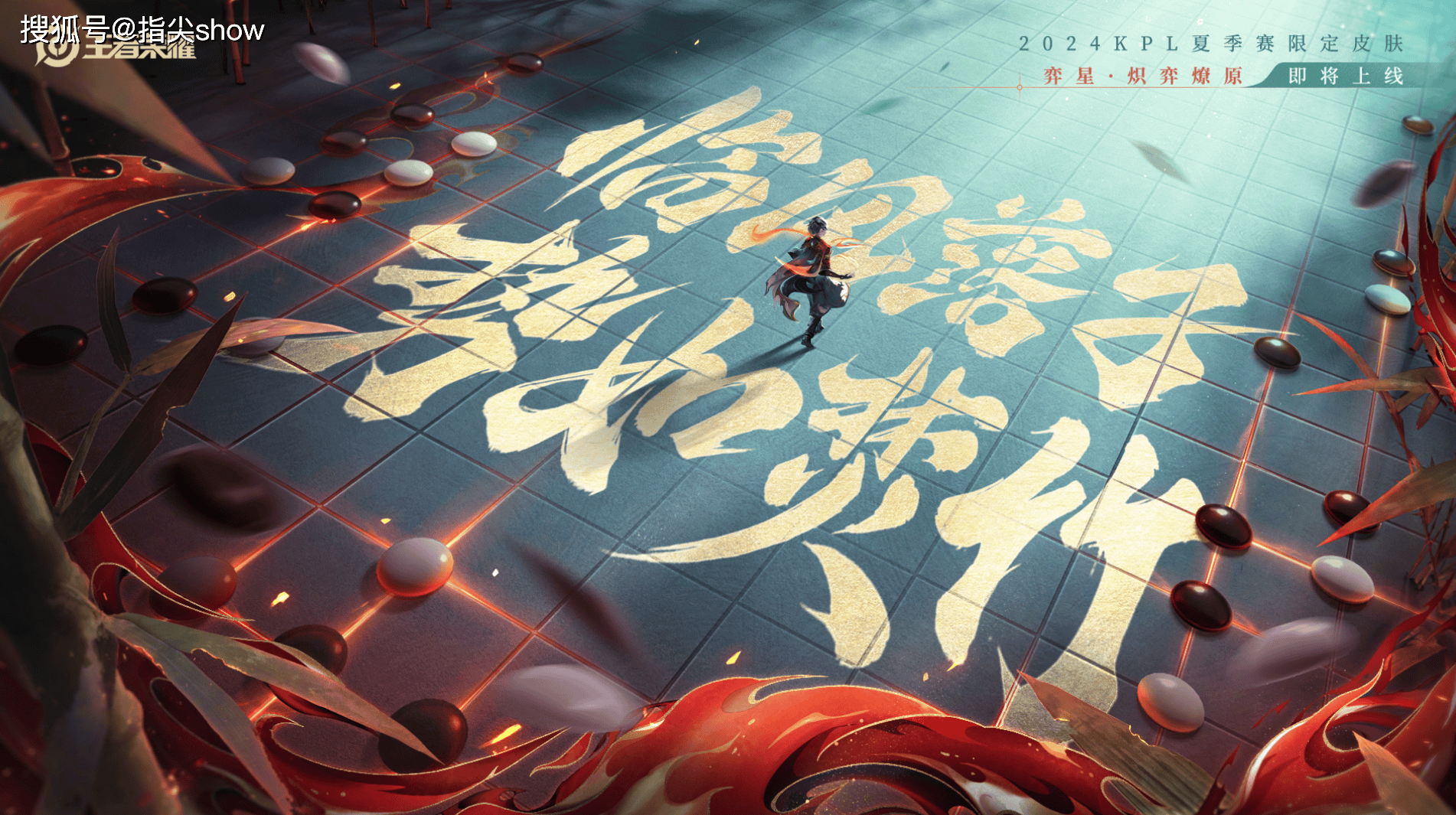 新皮肤名为炽弈燎原,可以看到,在棋盘中的弈星十分淡定,仿佛这就是他自己的一方世界,临风落子,势如焚竹,技能的颜色估计就如棋盘中的线一样以红色为主。