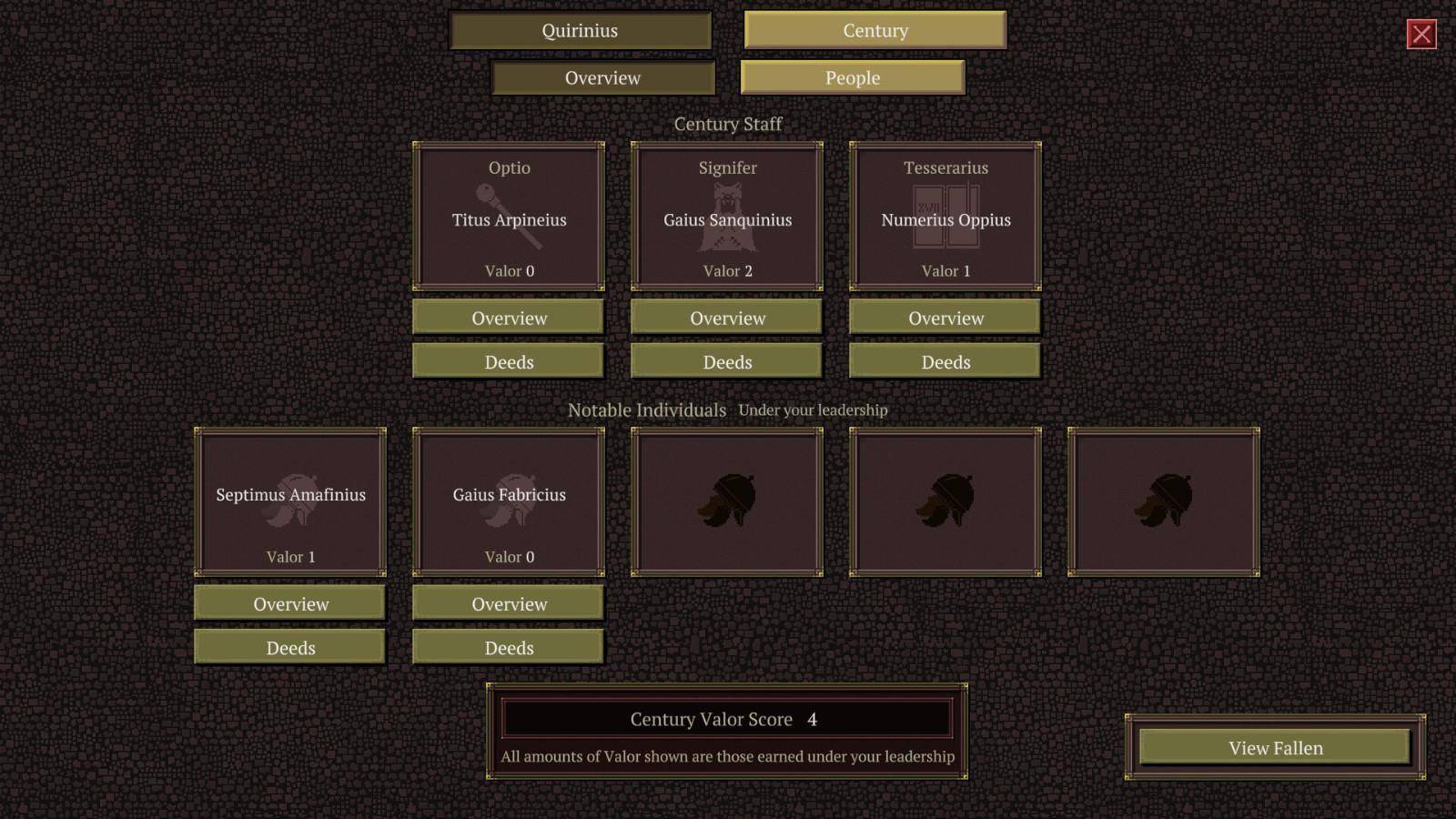 训练自己和你的百人队,任命你的军官,并发现为你服务的杰出人物。