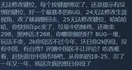 给出差评的玩家针对键位设置,闪退等。