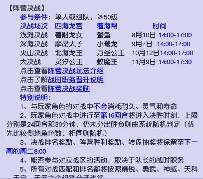 “深海决战”将于2024年9月7日星期六14:00-17:00举行,其中14:00-14:30为报名阶段,大家可以在阵营主城报名参赛;14::30-17:00为比赛阶段,无论胜负都可以拿到奖励。如果能进入排行榜,还有机会拿到转盘抽奖。