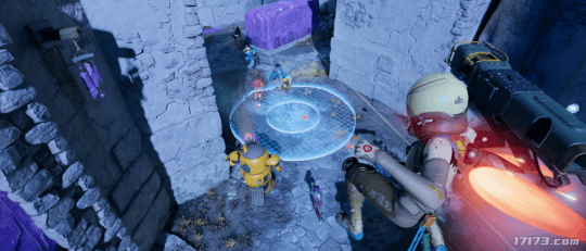 有些角色可以投掷炸弹,有些则可以使用烟雾弹来遮蔽视线,还有些角色可以种植种子为队友提供增益效果,或者为自己治疗。作为坦克角色的机器人虽然血量高,但移动缓慢,面对灵活的对手时可能会陷入困境;而当你操作敏捷的角色在空中进行二段跳时,不难发现开发团队从《命运2》中汲取到的经验。