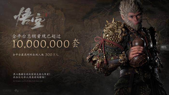 在此之前,《黑神话:悟空》已经创下了许多纪录。发售2天后,它成为Steam同时在线人数排名第2的游戏,也是Steam同时在线人数最多的PC单机游戏。发售4天后,游戏全平台总销量超过1000万套,全平台最高同时在线人数达到300万人。9月2日,海外数据分析网站VG Insights统计,《黑神话:悟空》在Steam平台的收入已经超过8.3亿美元(约合59亿元人民币)。加上其他平台,游戏目前的收入或已超过60亿元人民币。