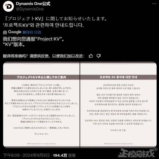 韩国Dynamis One工作室宣布,还没正式起名的新作《Prjoject KV》项目终止,同时删除项目所有资料。意思就是这款游戏已经被挫骨扬灰了,什么资源回收,改头换面的机会都没了。