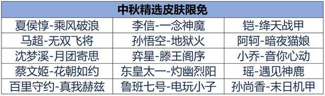 中秋精选皮肤限免