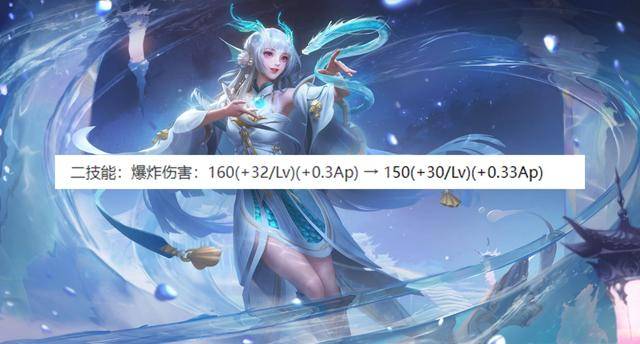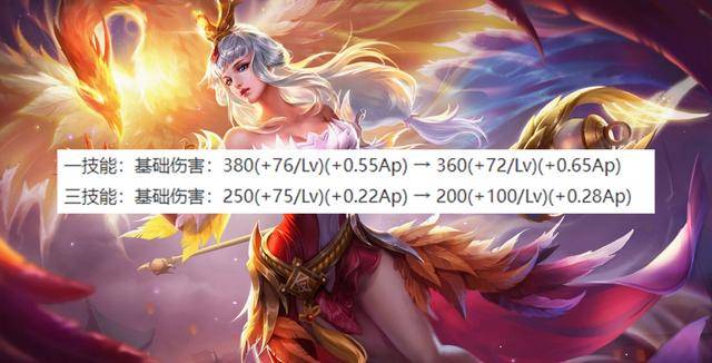 一三技能降低基础数值,然后提升AP加成,等级成长有的增加有的降低。如果是工具人半肉出装,前期是削弱,后期增强的力度也不大。属于削弱工具人打法,但如果出纯法后期伤害会提升的比较明显。