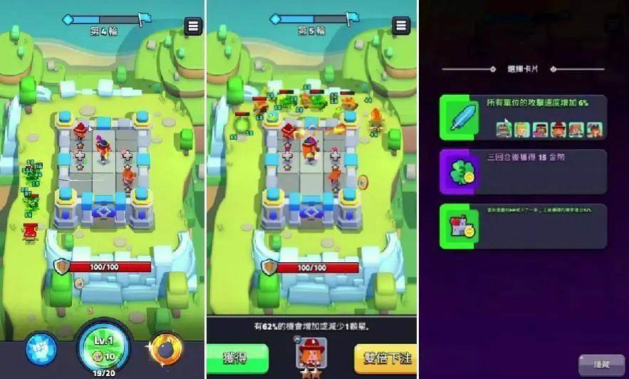 该游戏最显著的一个特征就是在局内的英雄召唤、英雄合成、高阶英雄抽取和局外的抽卡环节,随处可见“随机性”设计。也就是说,玩家每次耗费金币召唤出来的英雄是随机的,三个同类英雄合成的高阶英雄类别也是随机的,花费幸运币抽取高阶英雄时更考验大家的运气,抽卡的时候,运气好的玩家还有可能会喜提“再抽一次”。