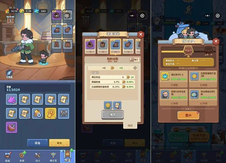 同时,该游戏还进一步增加了RPG养成元素,在一众可供召唤的英雄之外,增设了一个可以被看做是主角的“领主”角色。与其他英雄不同的是,该角色在对局中不需耗费任何资源即可召唤,且其单一存在、不可合成,玩家只能通过局外的装备系统对其数值进行强化。当玩家完成对应任务之后,还可以对领主名望进行晋升,从而为所有英雄数值带来全局加成。领主这一角色的加入,在降低游戏前期压力的同时,有效提升了游戏后期的养成潜力。